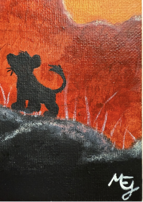 Aparecen representados Mufasa y Simba frente a un atardecer muy intenso, lleno de rojos, naranjas y amarillos que se mezclan en un cielo brillante. Elegí esta escena porque representa a la perfección la fuerza visual y simbólica que tiene esta película: un equilibrio entre belleza, aprendizaje y emoción.