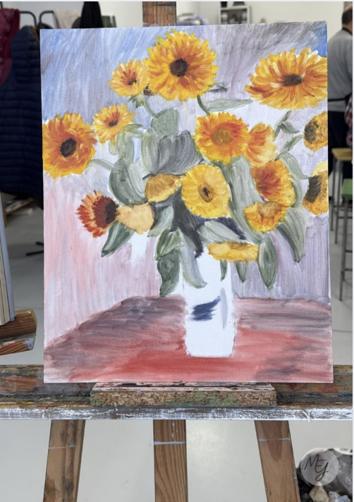 Trabajar con flores como primer ejercicio fue una experiencia curiosa. Me di cuenta de que, detrás de algo aparentemente sencillo, había un sinfín de matices: pétalos que no son de un solo color, hojas que cambian según la luz, fondos que pueden transformar por completo la sensación del cuadro. Esa observación detallada me enseñó que la pintura no es solo reproducir una imagen, sino aprender a mirar de otra forma.