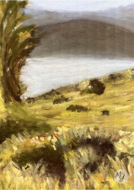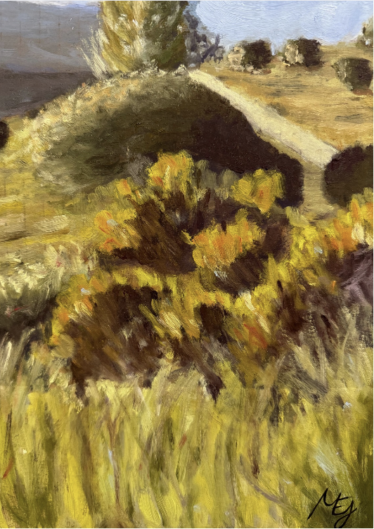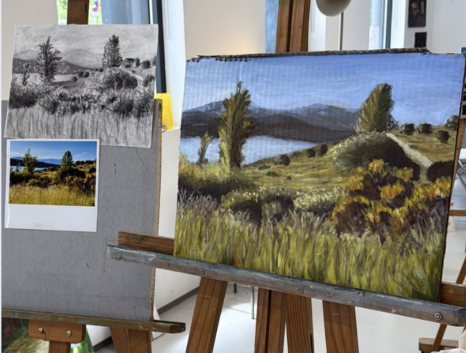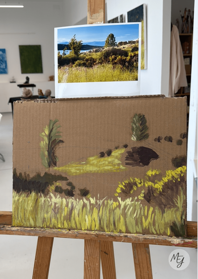 El hecho de haber trabajado previamente en carboncillo me dio una base sólida, ya tenía claras las proporciones, la disposición de los elementos y, sobre todo, la importancia de la luz en este paisaje. Esa experiencia me lo hizo todo más fácil, ya que pude centrarme en lo que supone el verdadero reto del óleo, la búsqueda de los tonos y los colores.