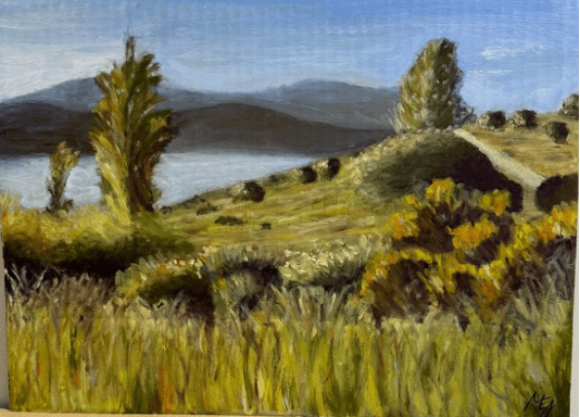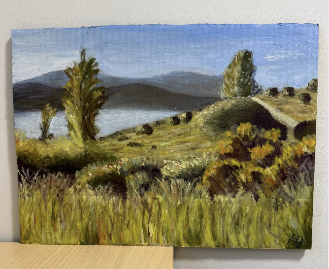 El resultado final es una obra que mantiene la esencia del paisaje original, pero enriquecida con los colores del óleo. Los detalles y la estructura siguen fieles a la versión en carboncillo, aunque aquí la luz se expresa de manera más clara. Esta reinterpretación me ha permitido comprobar cómo un mismo paisaje puede transformarse por completo dependiendo de la técnica y de los materiales.