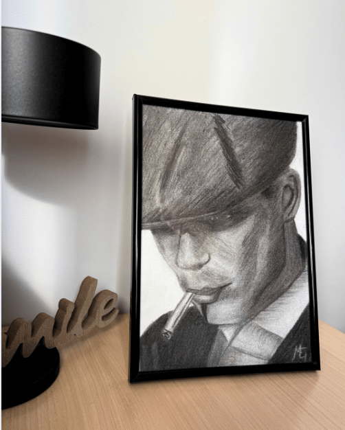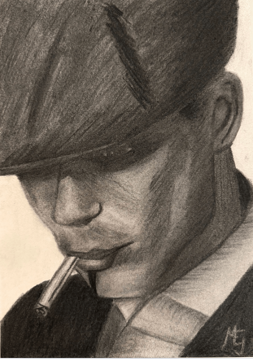 Mientras hacía este dibujo, solo pensaba en una persona. Sabía que Thomas Shelby era uno de sus personajes favoritos, y eso hizo que pusiera aún más cariño en cada trazo.