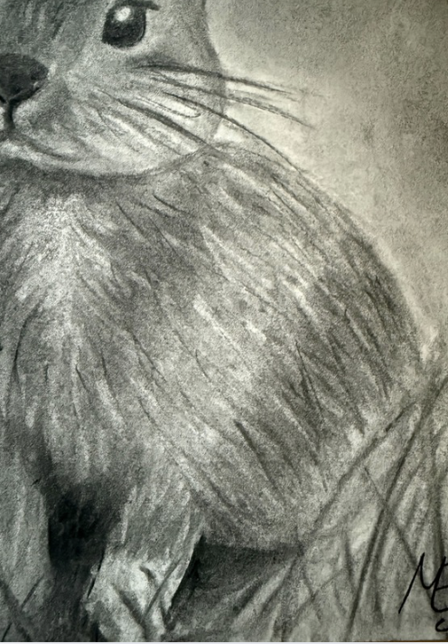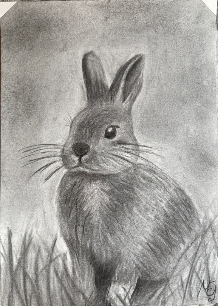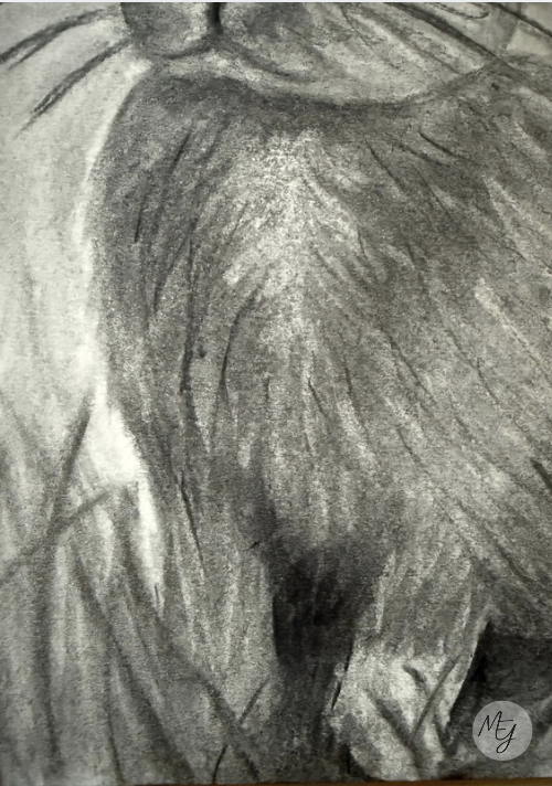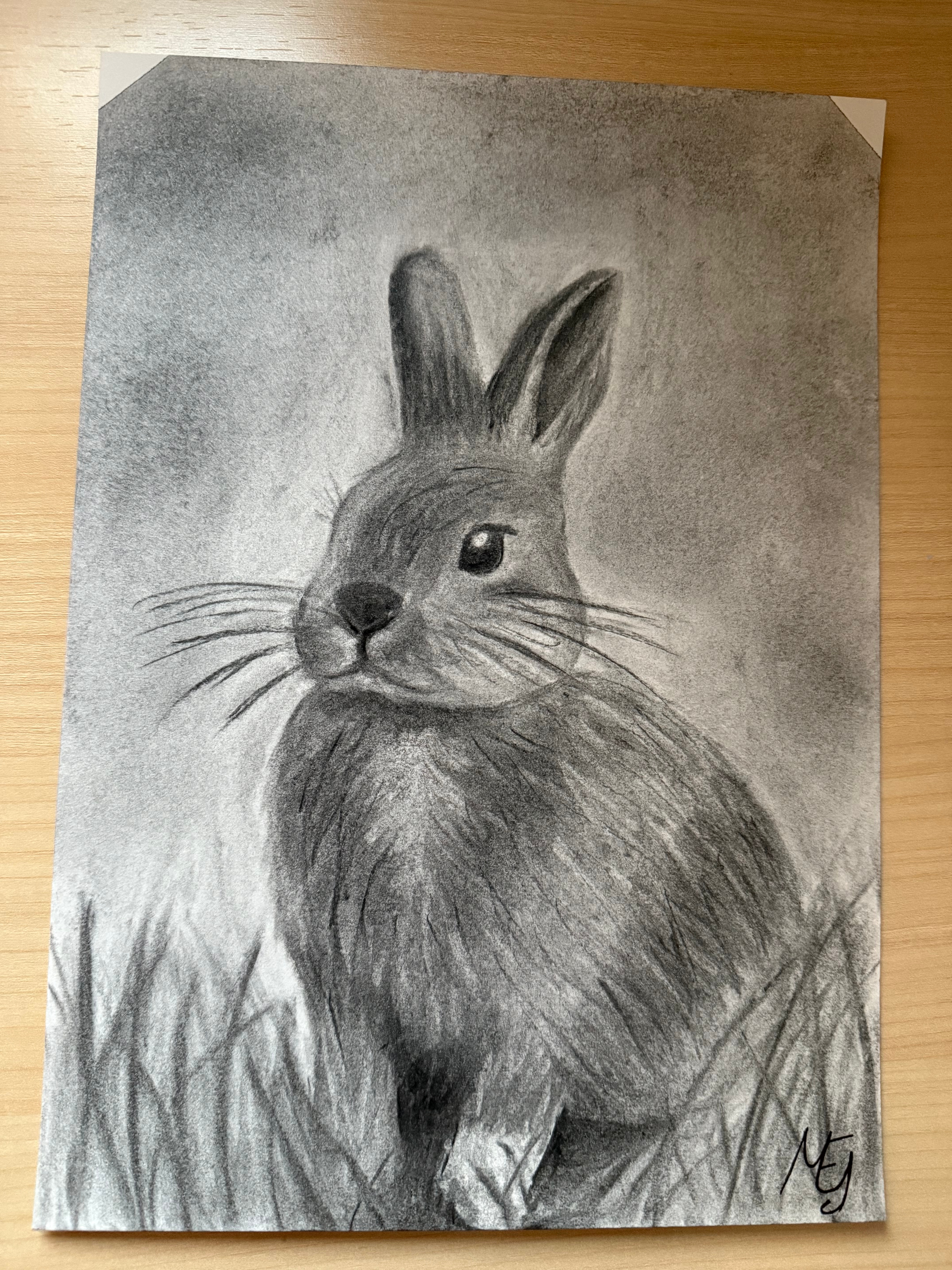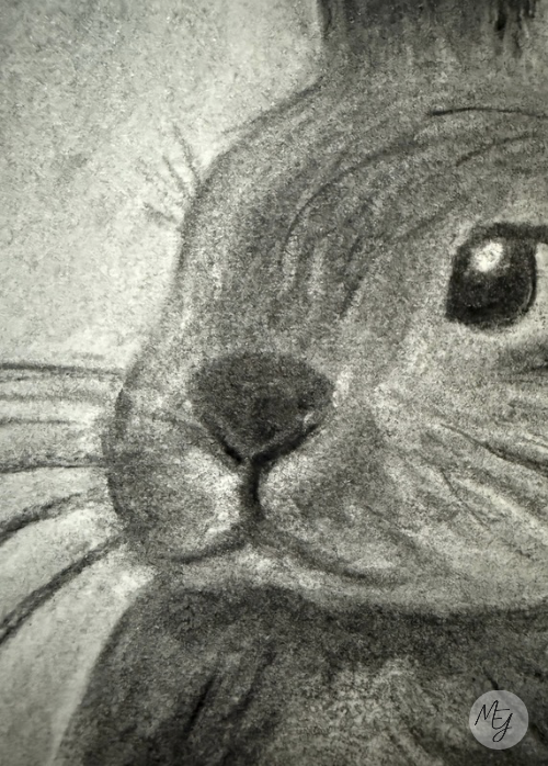 Este dibujo a carboncillo lo hice una tarde en mi habitación, un día en el que simplemente me apetecía mucho dibujar y dejarme llevar. Me inspiré en mi conejito, aunque reconozco que no conseguí representar del todo sus características principales, así que volveré a trabajar en ello más adelante.