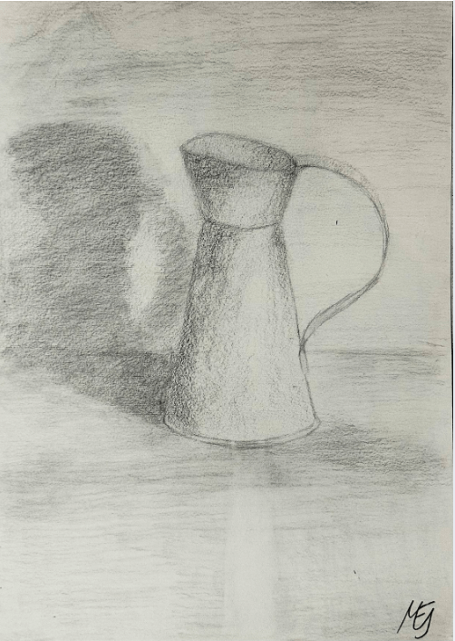 Este fue mi primer bodegón, mi primer día de clase. El ejercicio fue pintar del natural con grafito una jarra metálica.